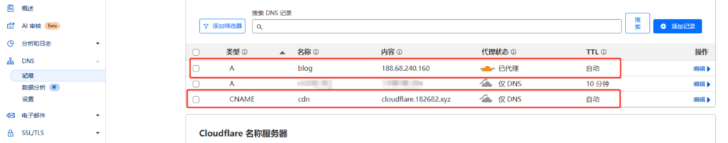 主域名A和B都托管到Cloudflare