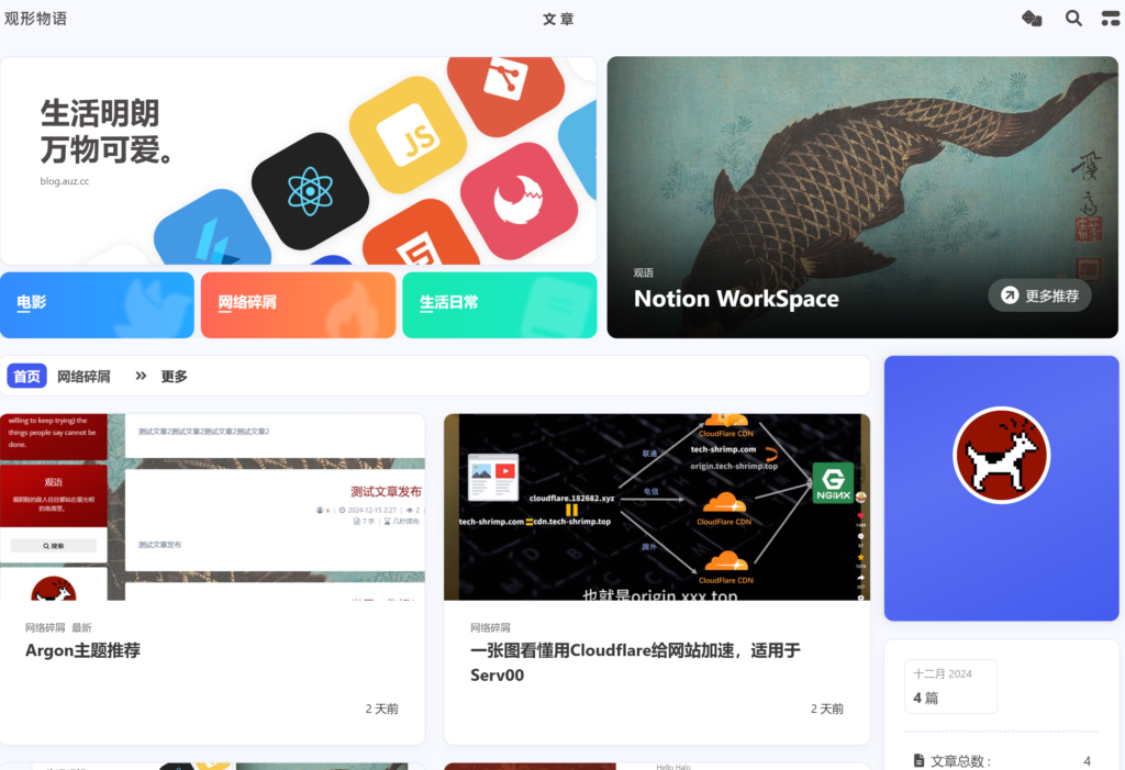 免费构建个人博客Hexo + GitHub + Cloudflare x | 2024-12-17 22:24 | 4,382 | 随笔 66 字 | 几秒读完 参考文章:https://linux.do/t/topic/298986关于书写 Markdown抽空研究下 主题的美化设置还没来得及折腾看下安装效果图 实例:https://blog.auz.cc/ AUZ为Authorization的缩写,“授权,委托”